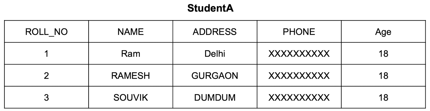 StudentB테이블의ROLL_NO,NAME,Age열의 데이터를StudentA테이블에 삽입합니다. StudentA테이블의 나머지 열은 기본값인null로 채워집니다.INSERT INTO StudentA(ROLL_NO, NAME, Age) SELECT ROLL_NO, NAME, Age FROM StudentB;