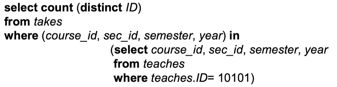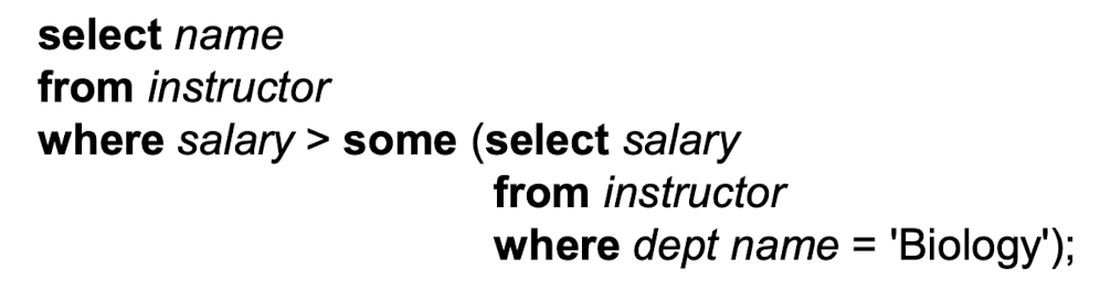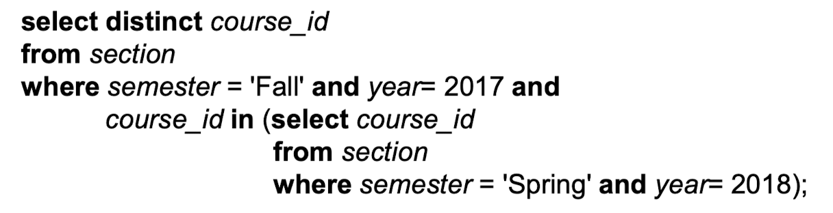 - Where 절: P는 B <operation> (subquery) 형태의 표현식으로 대체될 수 있습니다.