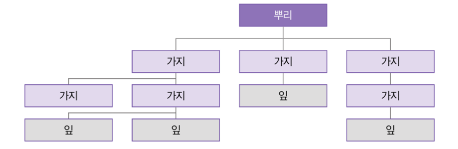 - 트리는 뿌리, 가지, 잎 세 가지 요소로 이루어져 있다.