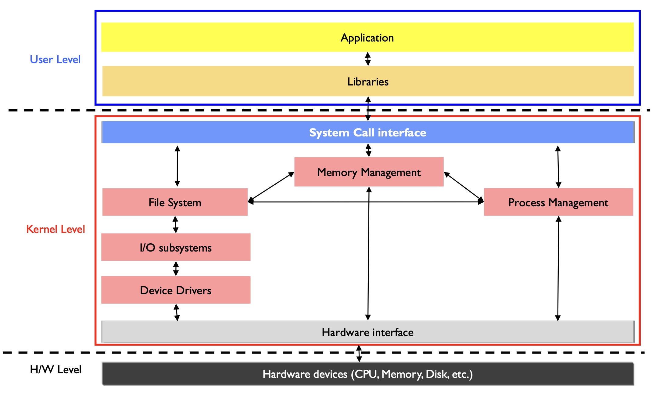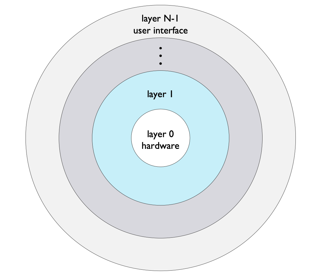 - 가장 낮은 layer (layer 0)는 하드웨어입니다.