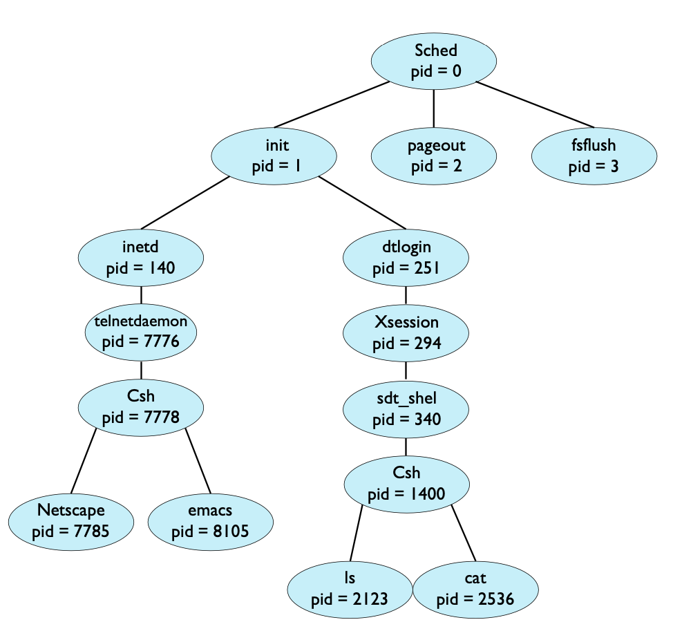 - 자식 프로세스는 다른 프로세스를 생성합니다.