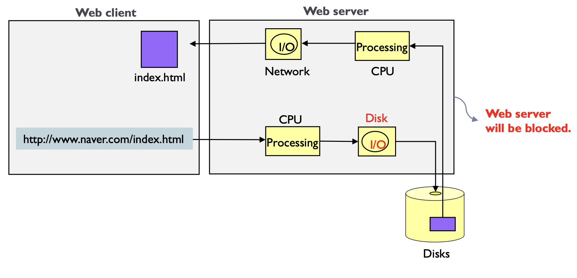 - 웹 서버가 입출력(I/O) 작업을 수행하면?