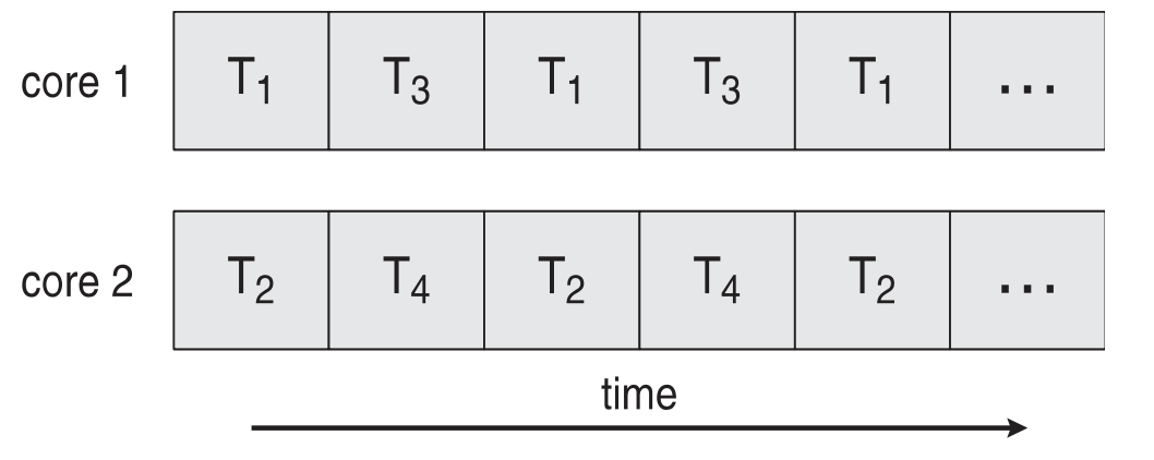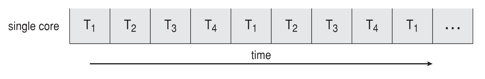 - 단일 코어 시스템에서 동시 실행(Concurrent execution)