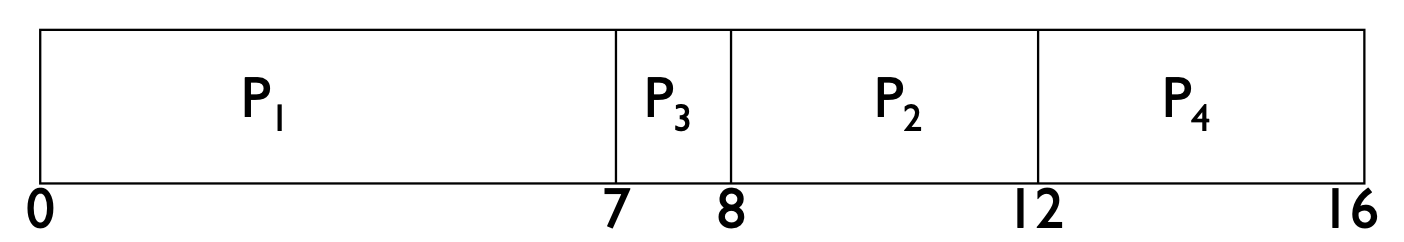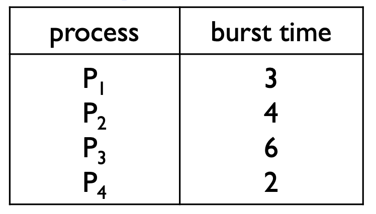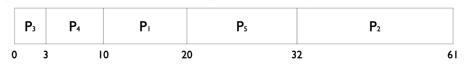 - 예: 주어진 processes 집합에 대해 Gantt Chart를 사용하는 SJF (Shortest Job First).