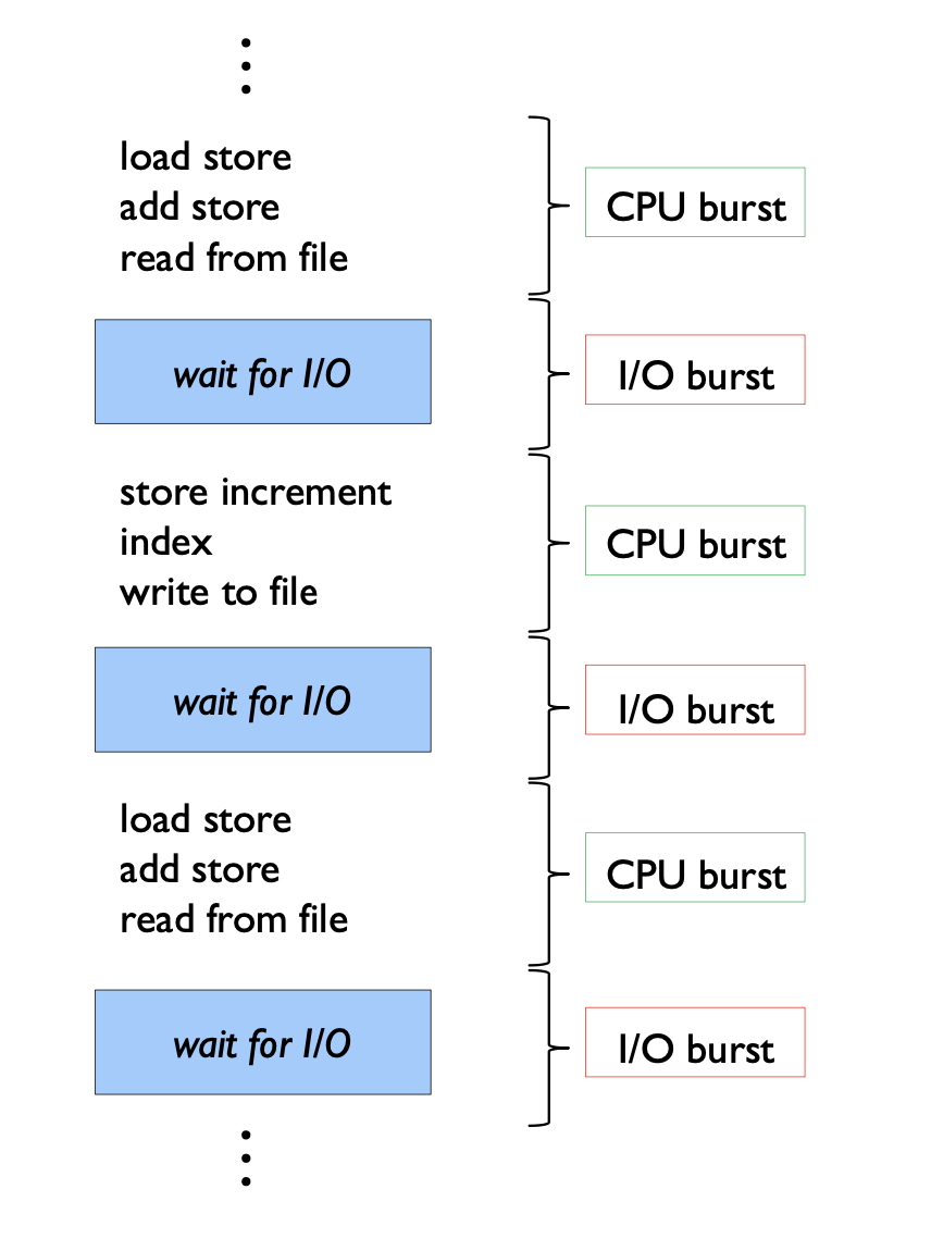 CPU bursts and I/O bursts의 교대 시퀀스