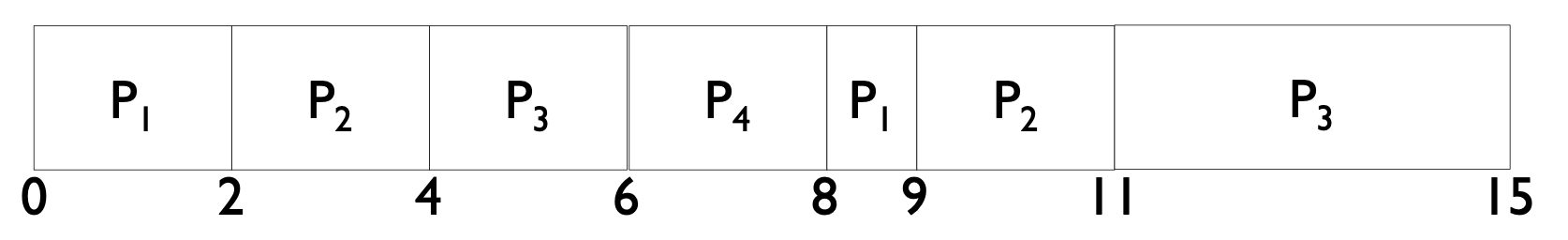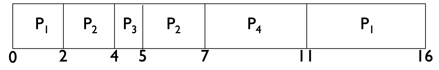 - Response time for P₁ = 0, P₂ = 2, P₃ = 4, P4 = 6