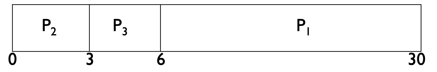 - P2, P3, P1 순서로 프로세스가 도착했다고 가정해보자