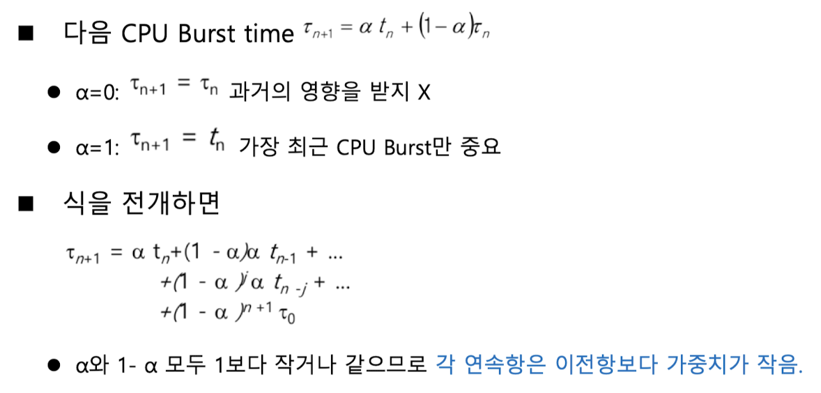 이전 CPU 버스트 시간을 이용한 추정 (지수 평균)