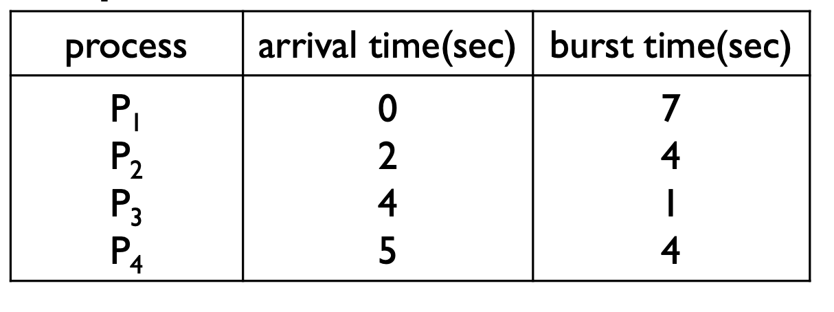 - 새로운 프로세스가 현재 실행 중인 프로세스의 남은 시간보다 짧은 CPU 버스트 길이로 도착하면 선점