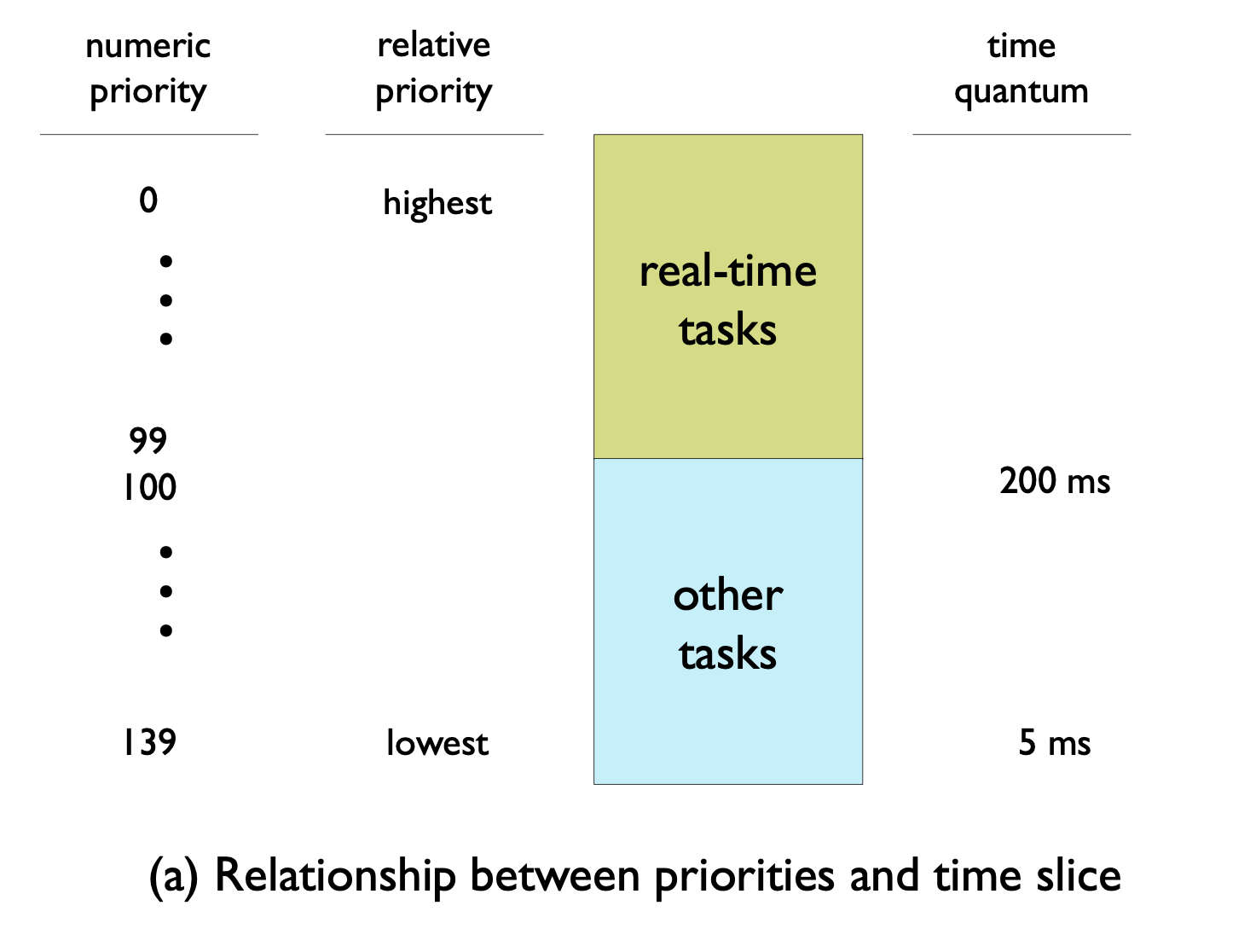 Linux는 timeslice를 사용해서 가장 높은 우선 순위 프로세스를 스케줄링합니다.