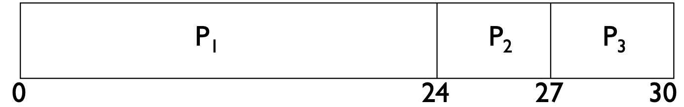 - Wating time for P₁ = 0, P₂ = 24, P₃ = 27