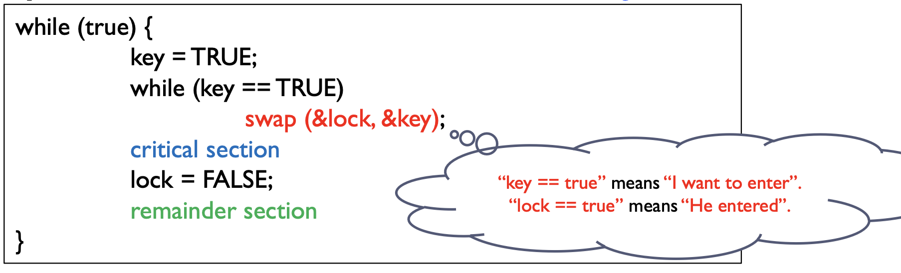 각 프로세스는 로컬 boolean 변수 key를 가집니다.