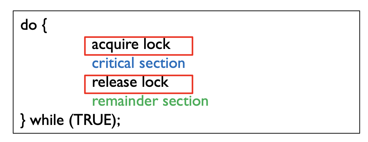 - Critical section 들어갈 때 요청, 나갈 때 release