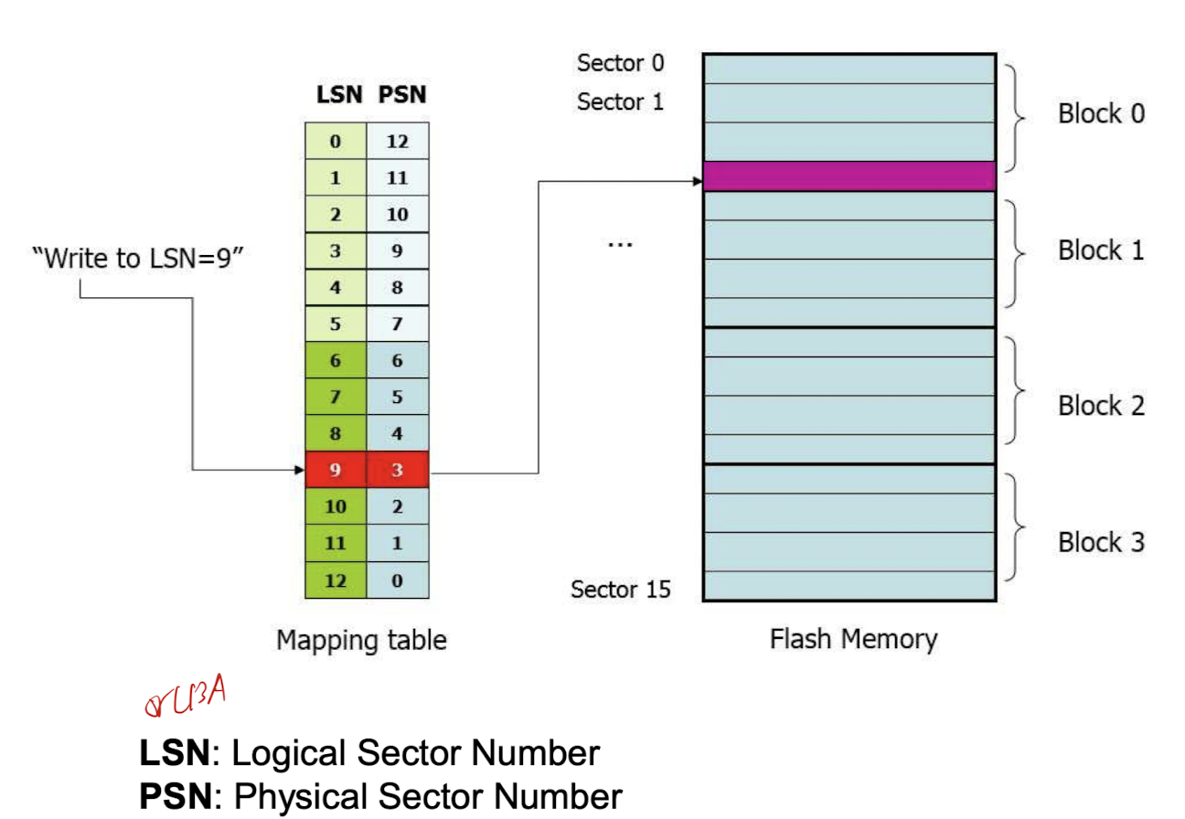 - Flash translation layer에 의해 remapping 수행
