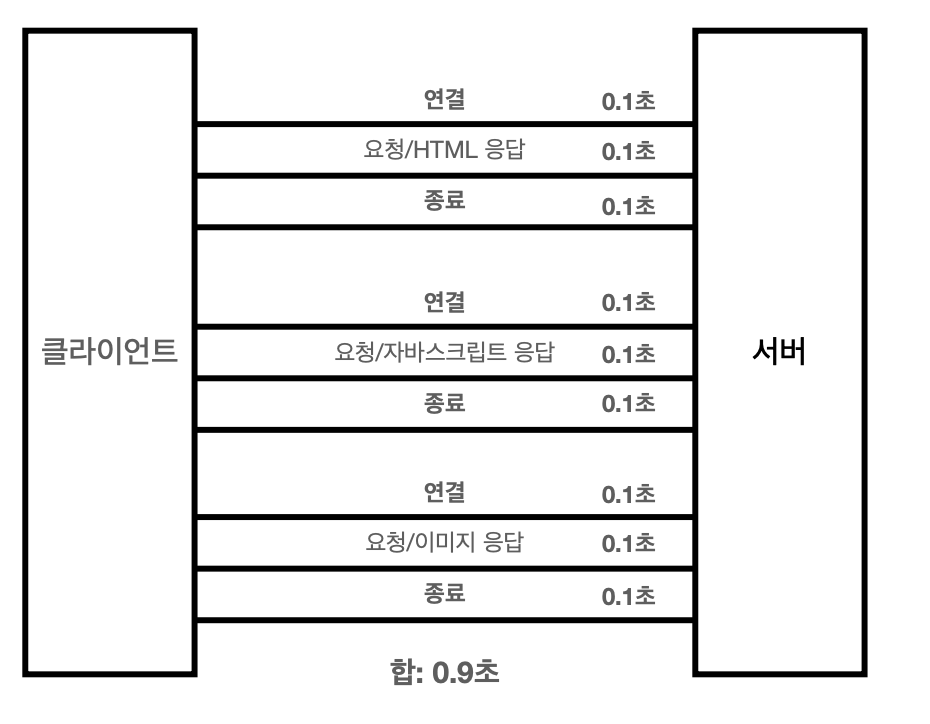 - TCP/IP 연결을 새로 맺어야 함 - 3 way handshake 시간 추가