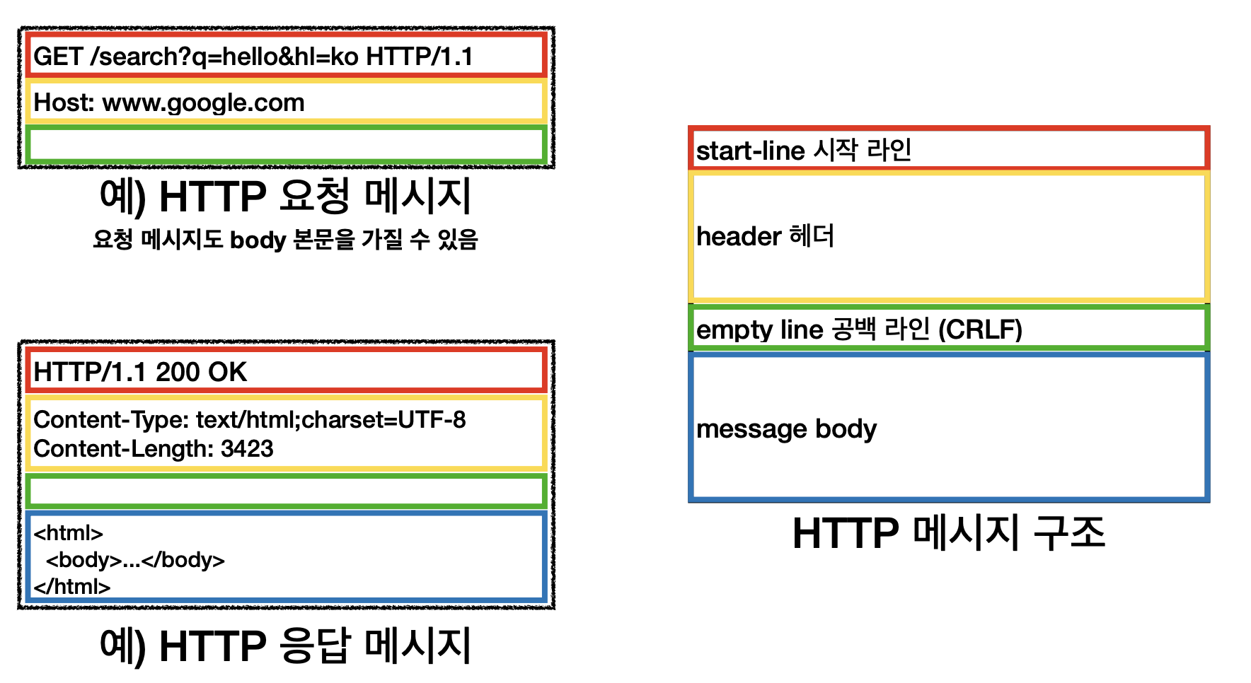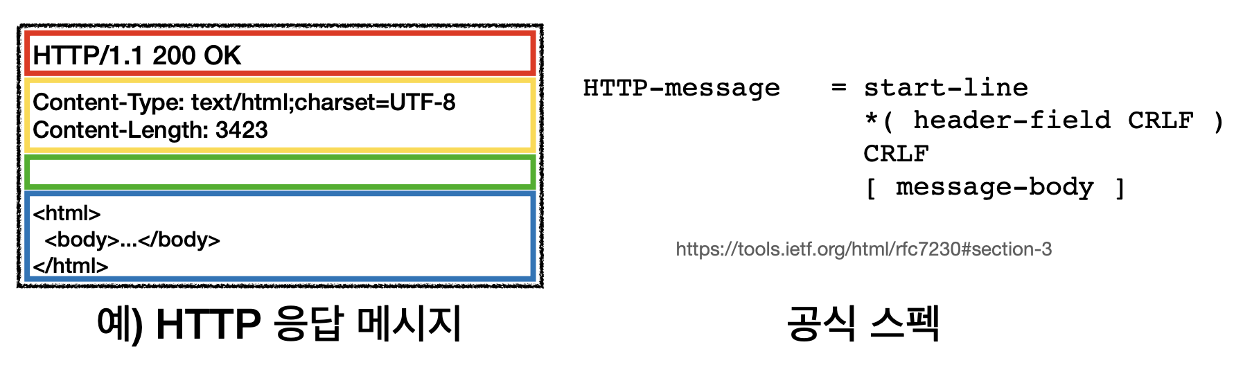- start-line = request-line(요청 메시지) / status-line(응답 메시지)