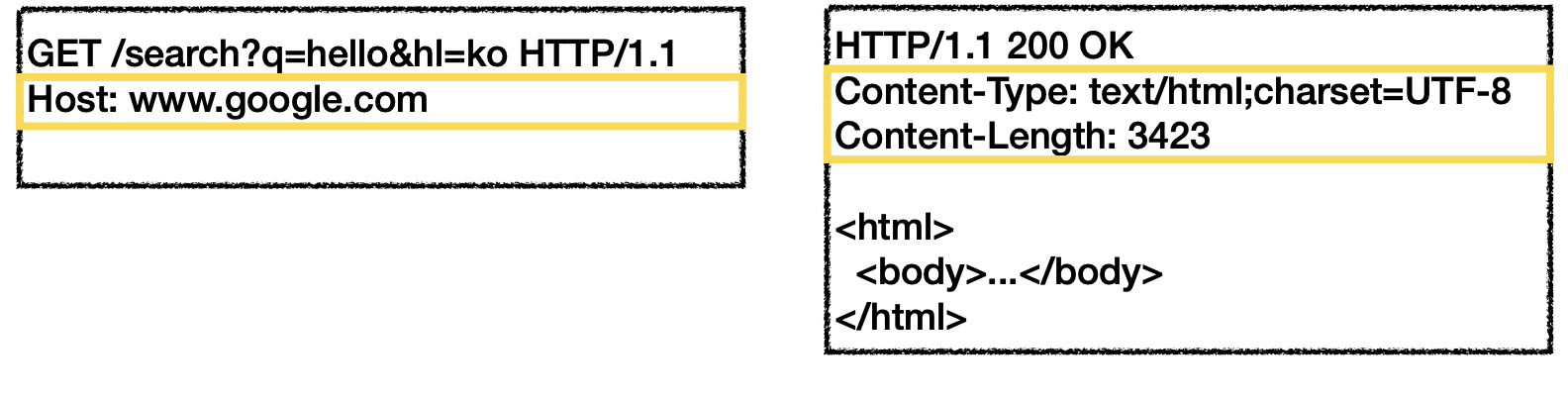 - 예) 메시지 바디의 내용(xml인지, html인지), 메시지 바디의 크기, 압축, 인증, 요청 클라이언트(브라우저) 정보, 서버 애플리케이션 정보, 캐시 관리 정보...
