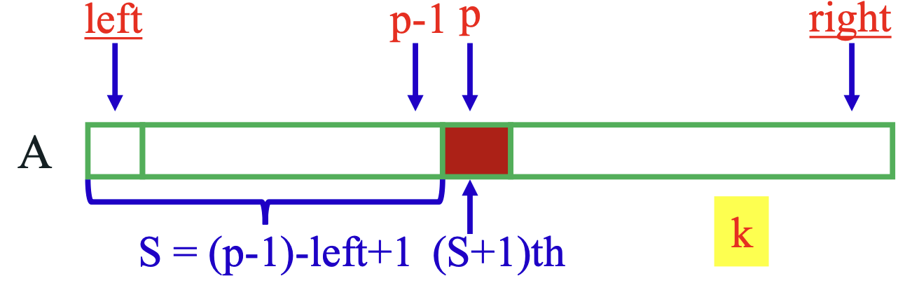 4. else if ( k = S +1) return A[p] // 피봇 = k번째 작은 숫자