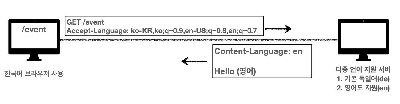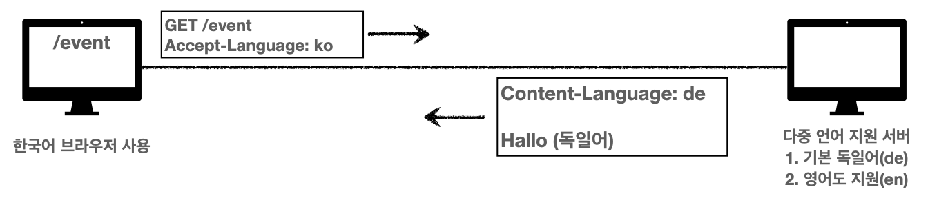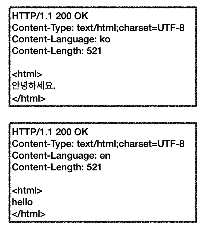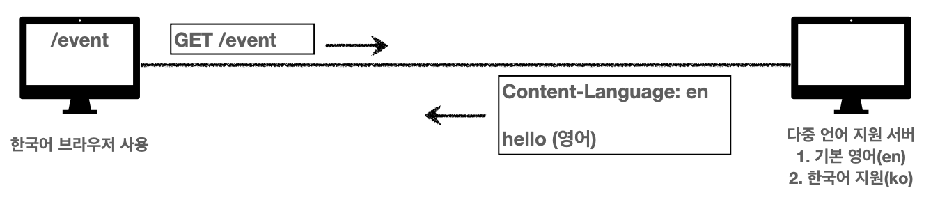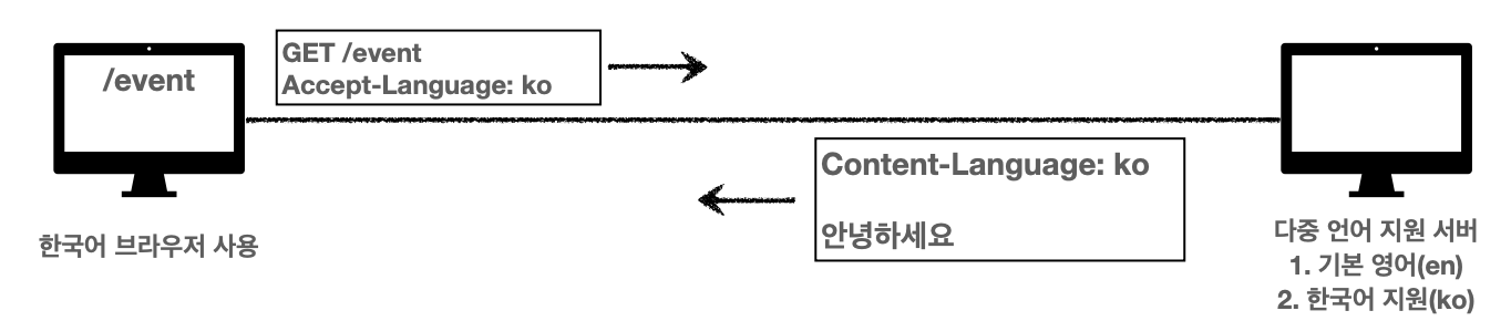 - ex) 클라이언트가 원하는 표현으로 응답을 달라고 서버에게 요청을 한다.