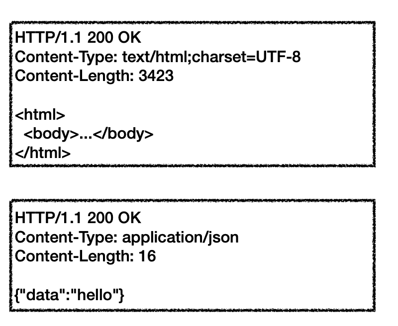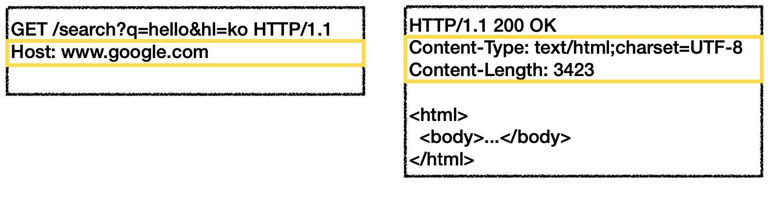 - 데이터 유형(html, json), 데이터 길이, 압축 정보 등등