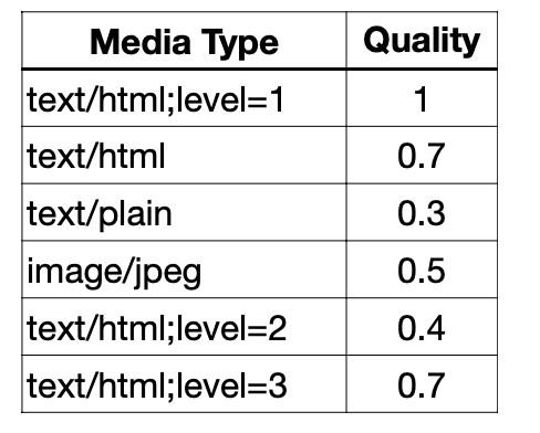 - 서버는 클라이언트가 원하는 우선순위에 맞춰서 할 수 있으면 원하는 표현데이터를 만들어 내려준다는 의미