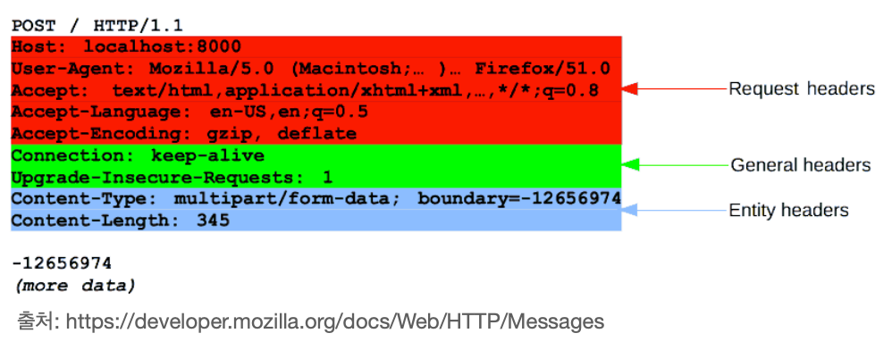 - Request 헤더: 요청 정보, 예) User-Agent: Mozilla/5.0 (Macintosh; ..)