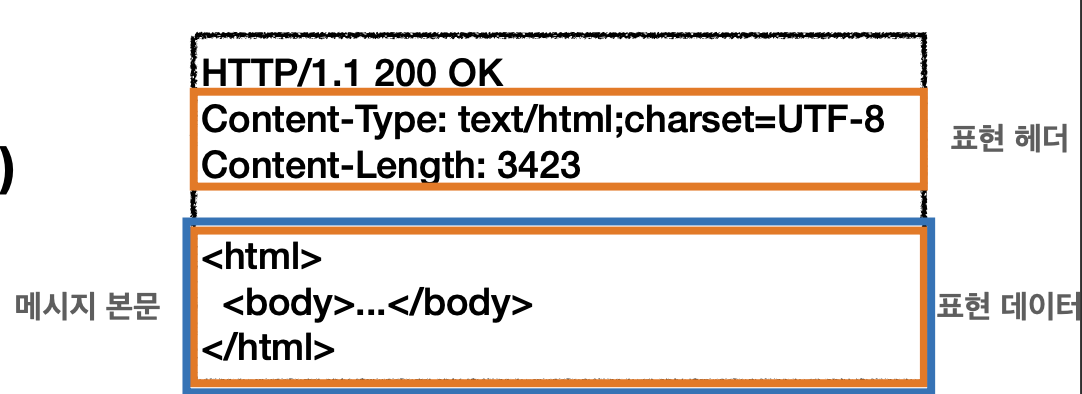 - 표현은 요청이나 응답에서 전달할 실제 데이터