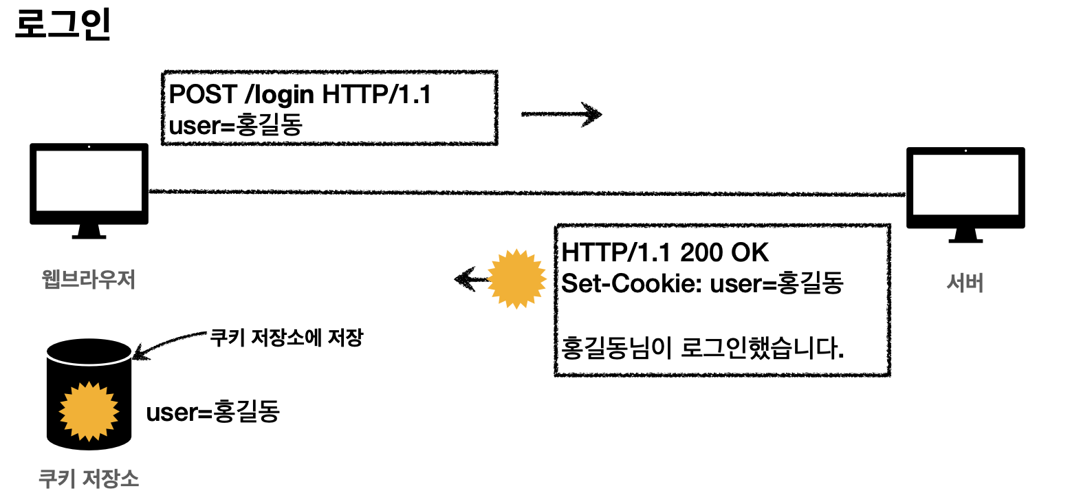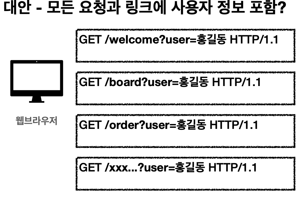 - 웹 브라우저의 쿠기 저장소에다가 user=홍길동 을 저장해둔다