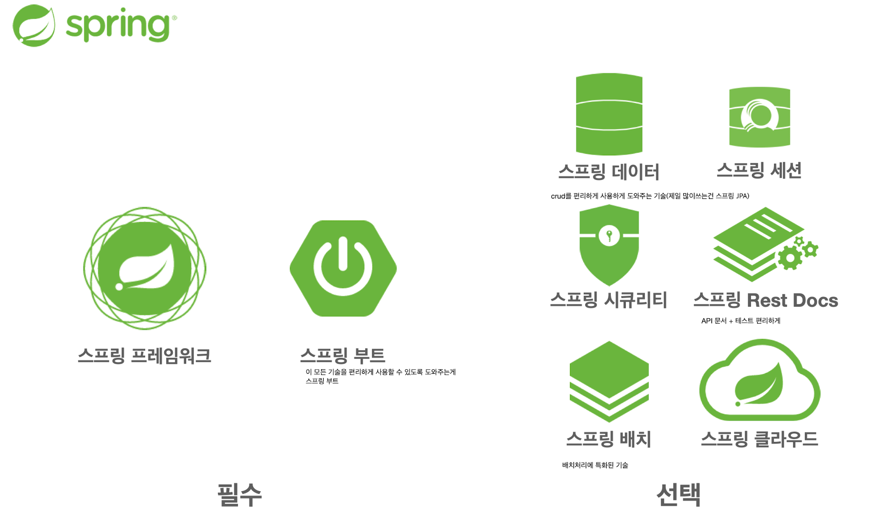 - 스프링 부트, 스프링 프레임워크 등을 모두 포함한 스프링 생태계