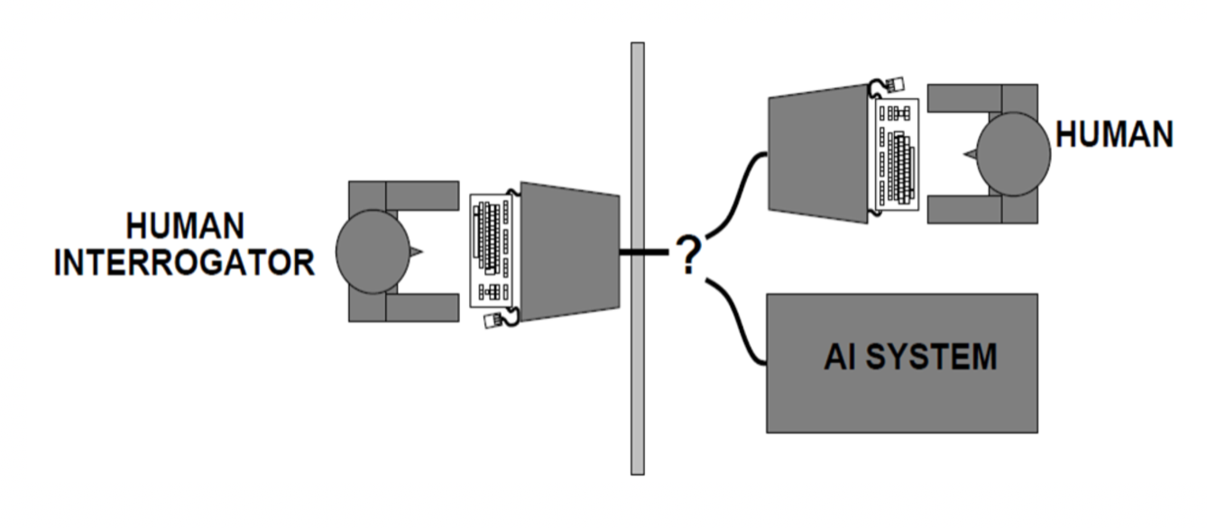 튜링은 1950년에 "튜링 테스트" 라는 개념을 제안했다. 이 테스트는 지능의 만족스런 작동을 정의하기 위해 설계되어, 컴퓨터가 인간처럼 행동하는지 평가하는 방법이다. 튜링 테스트에서 컴퓨터가 테스트를 통과하려면, 인간 심문자가 몇 가지 질문을 한 후, 응답이 인간으로부터 왔는지 컴퓨터로부터 왔는지 구별할 수 없어야 한다.