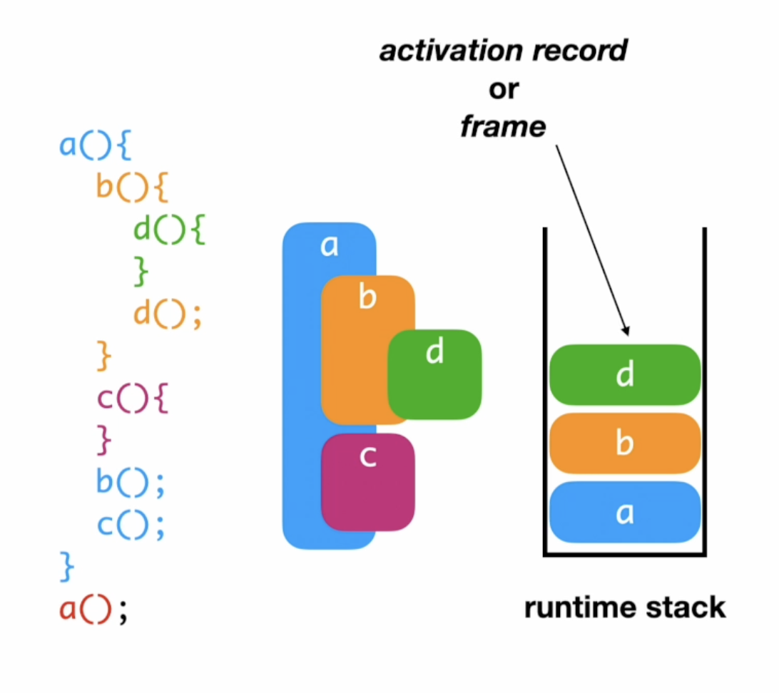 - activation records를 담고 있는 스택을 runtime stack이라고 한다.