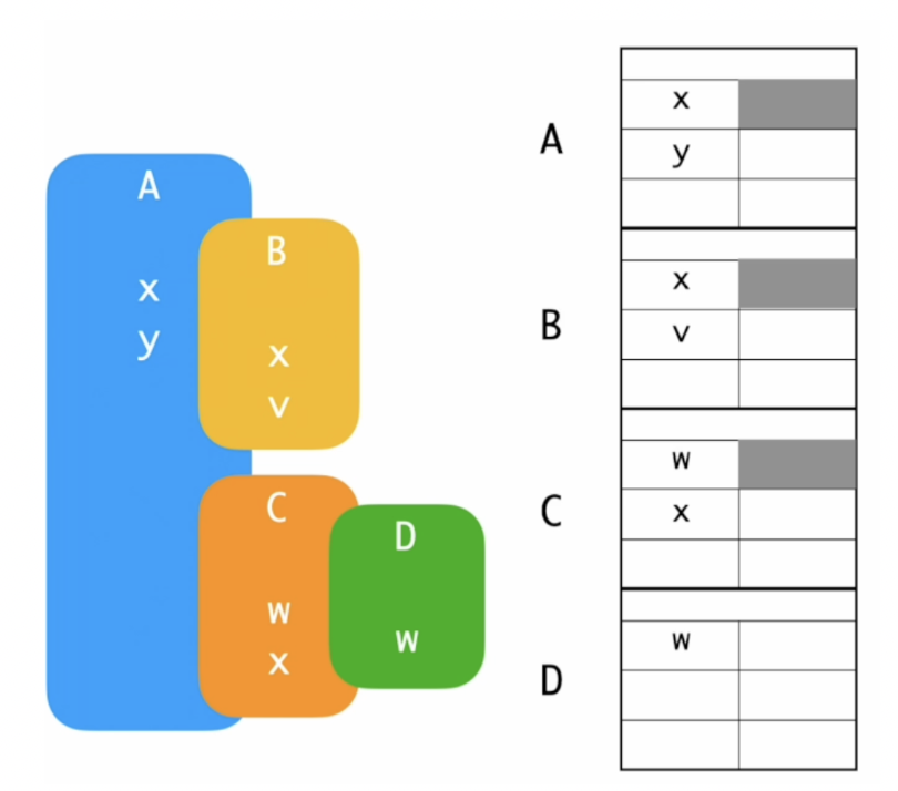 - 컴파일 시점에 우리는 x가 C에 선언된 것을 알고 있습니다(Static Scope를 통해서).
