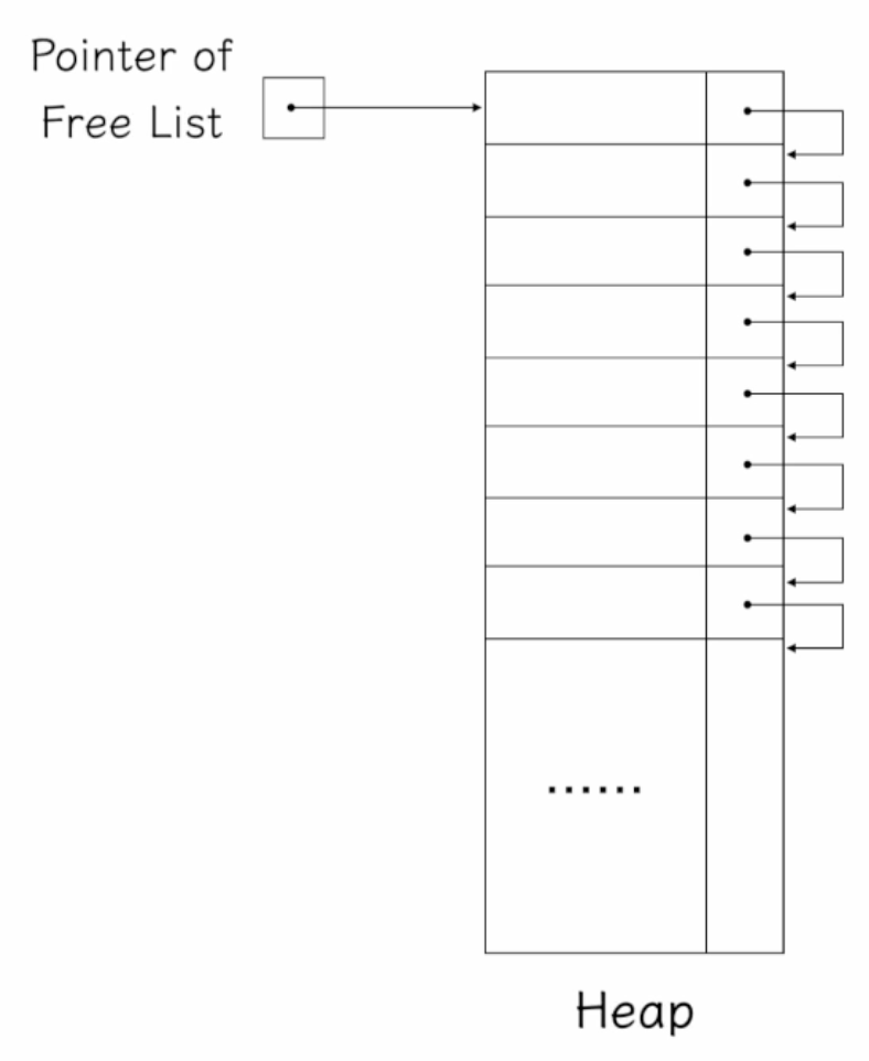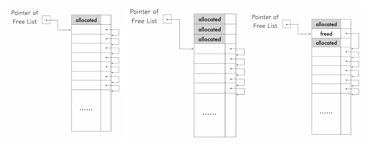 - free list의 pointer는 리스트에 있는 first block을 가리킨다.