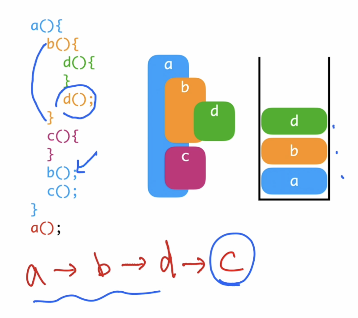 예시: C가 D를 호출하는데, D는 C 내부에 있다