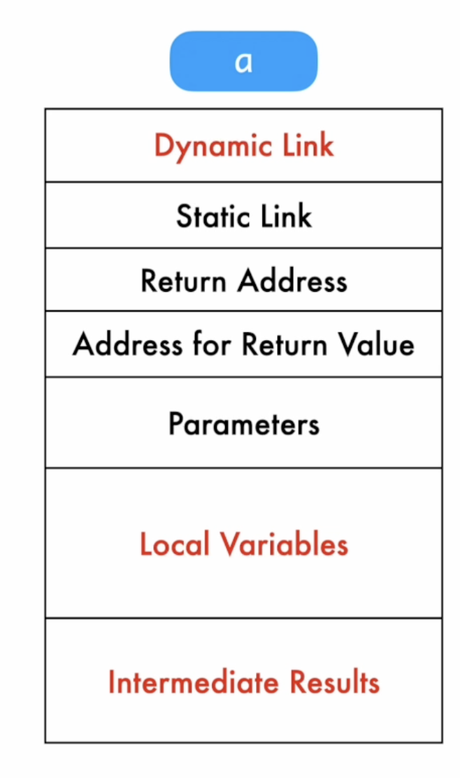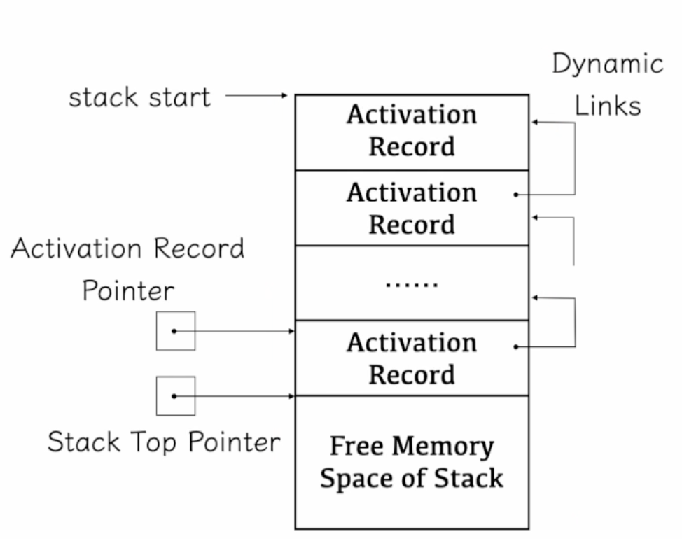 - Dynamic Link는 스택에서 이전 activation record의 시작부분을 가리킨다.
