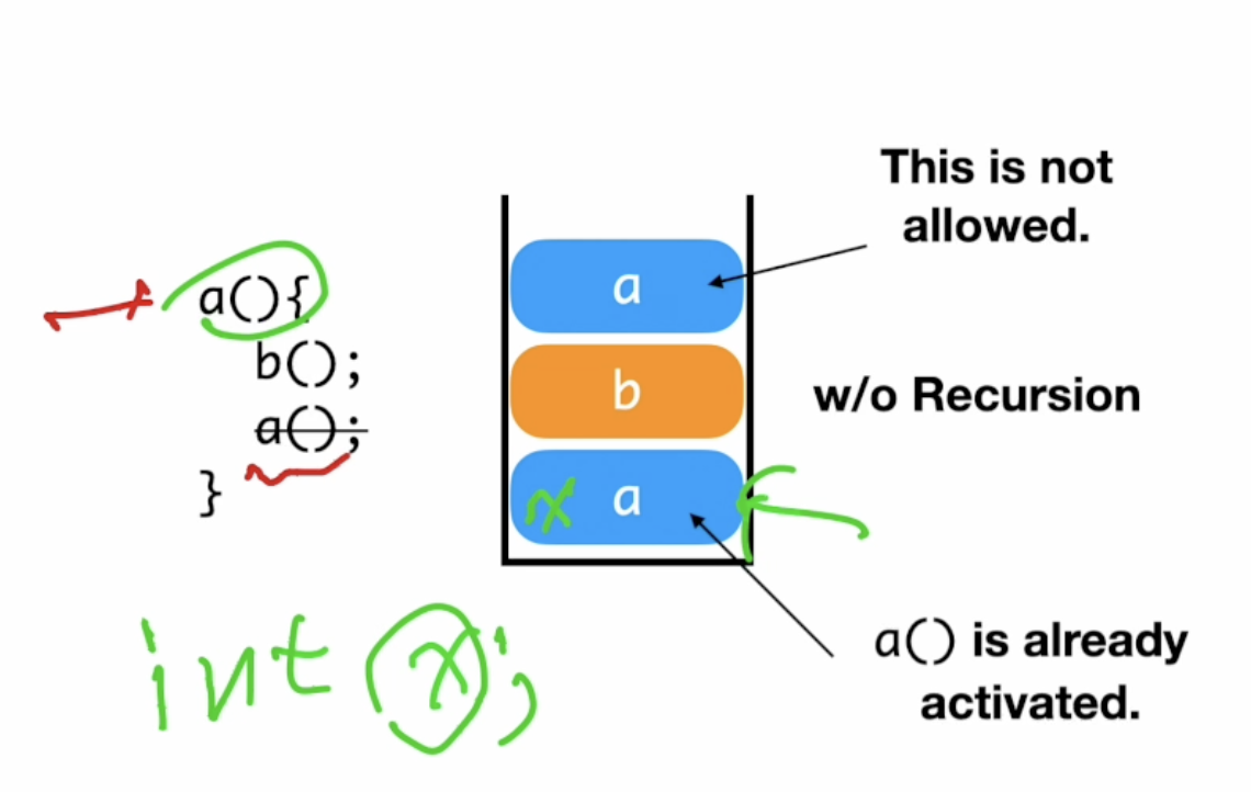 재귀가 없으면 두 개 이상의 프로시저가 동시에 활성화될 수 없음 -> PL의 다른 components를 정적으로 처리