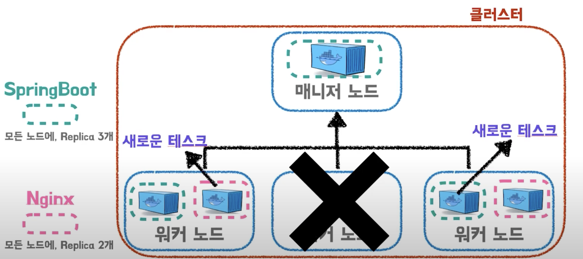 그림과 같이 하나의 노드가 다운되면, 다른 노드에 테스크가 생성된다.