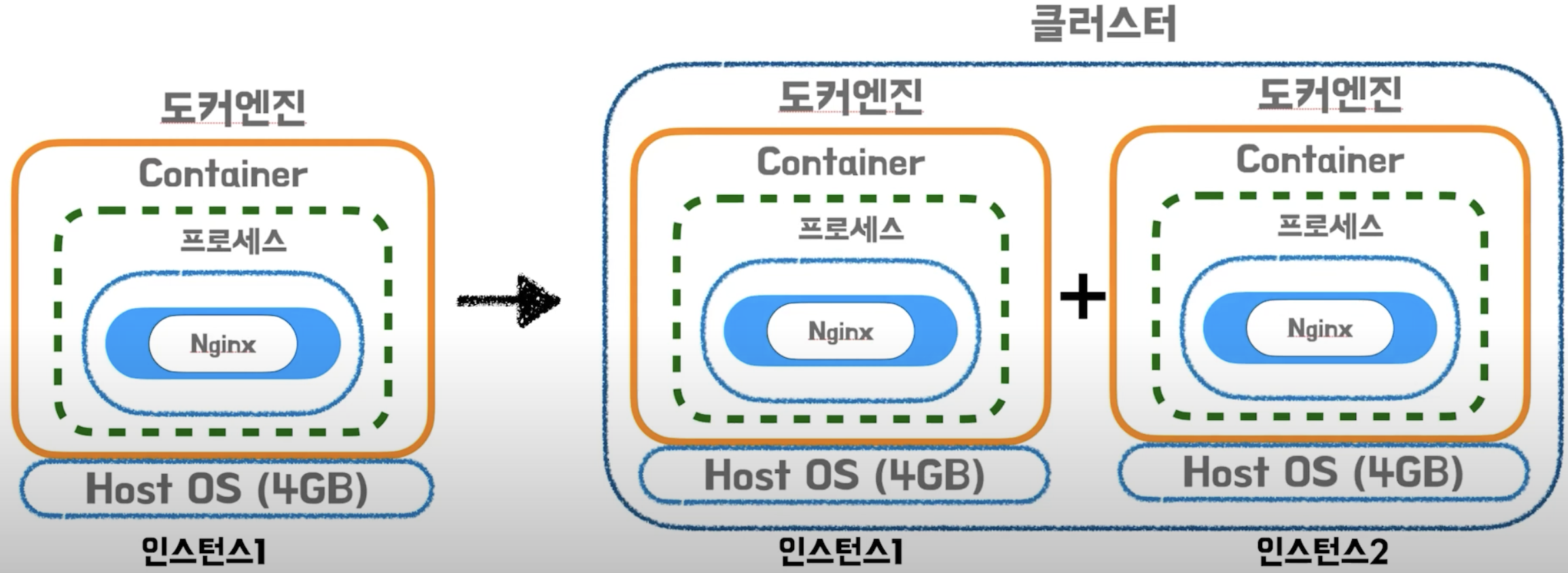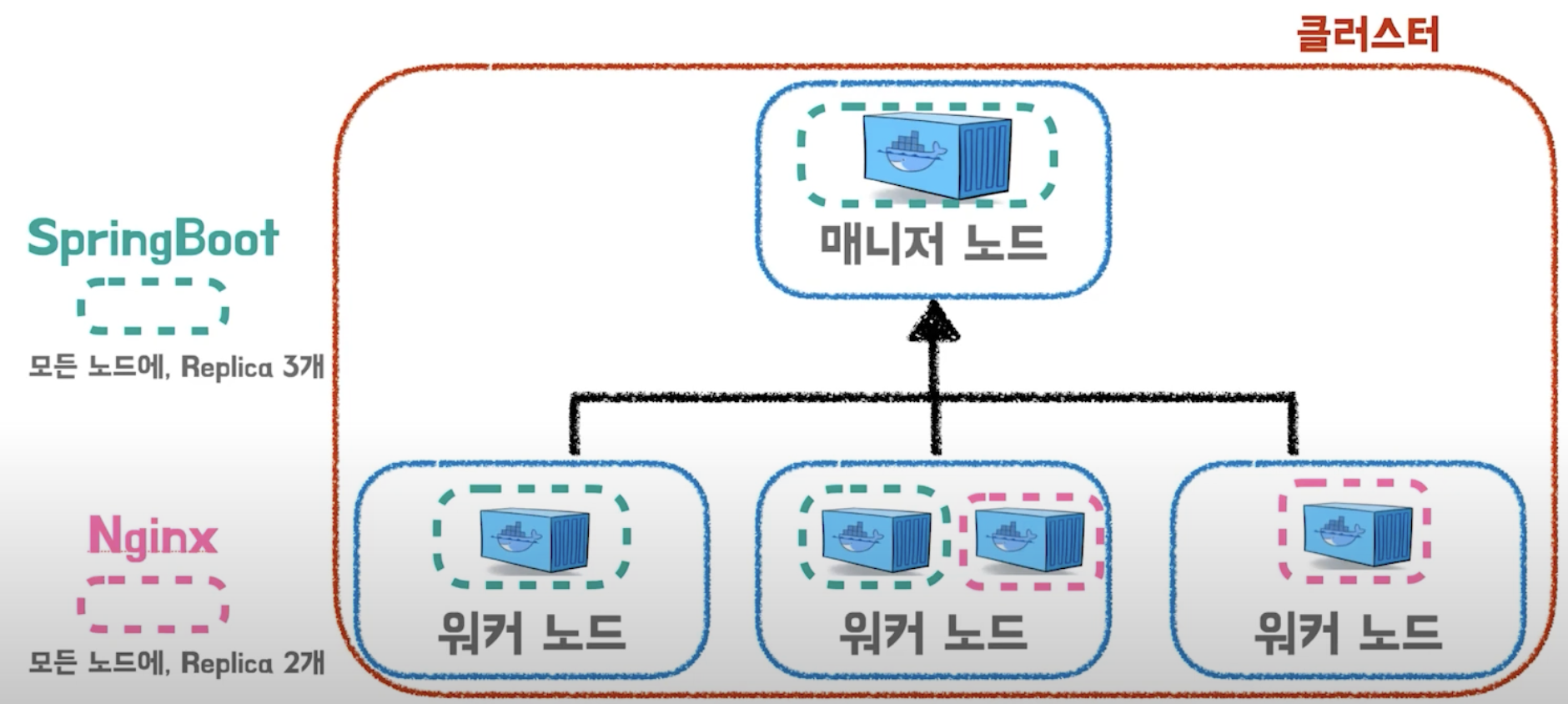 - 워커 노드: 실제로 컨테이너가 생성되고 관리되는 도커 서버