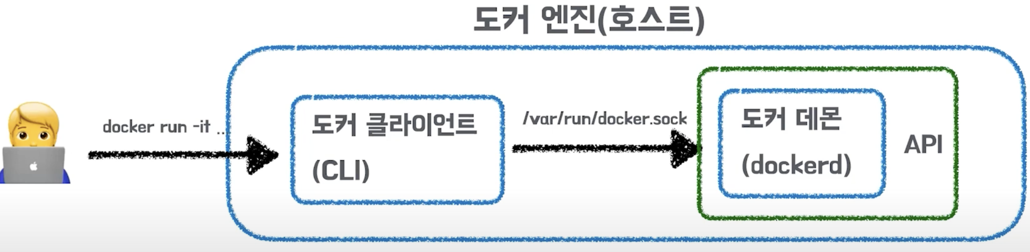 - 먼저 사용자는 docker 명령어로 도커 엔진에게 명령어를 보낸다.