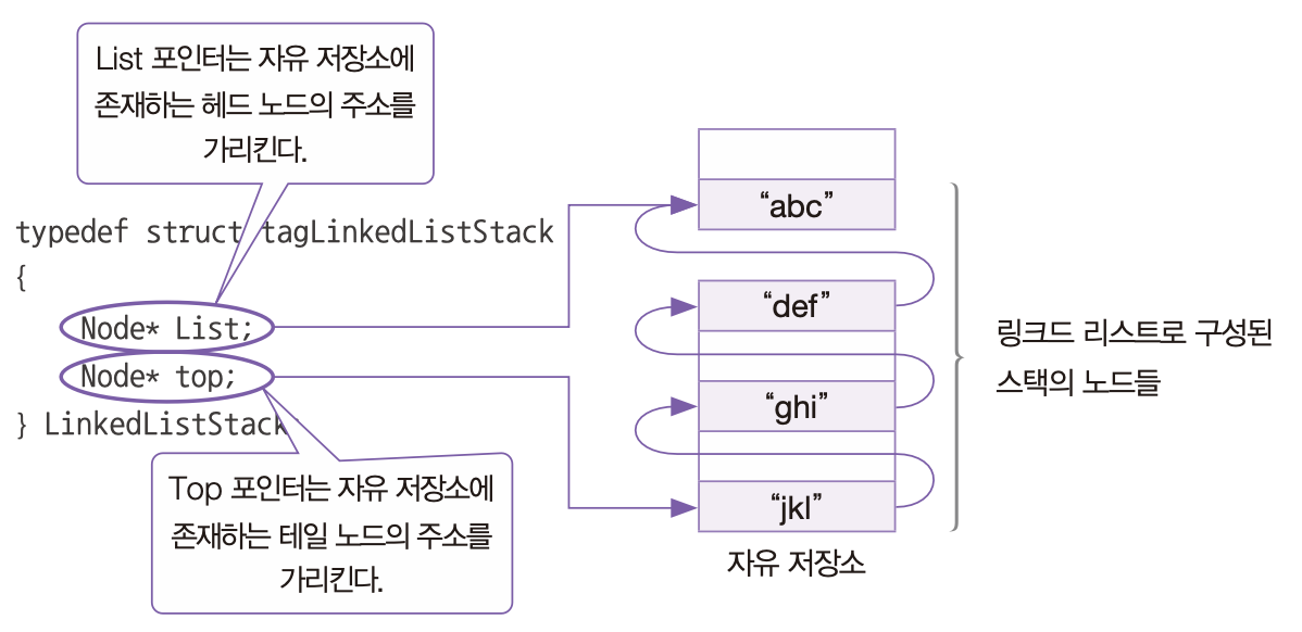 * Top 포인터는 스택의 입출력이 이루어지는 최상위 노드에 대한 포인터임