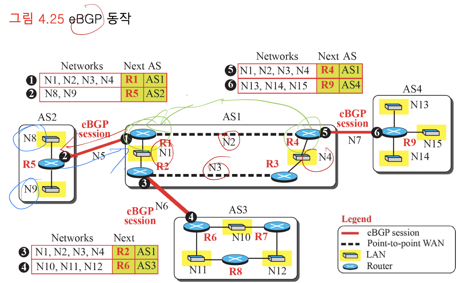 - iBGP(internal BGP) : 모든 라우터에서 작동
