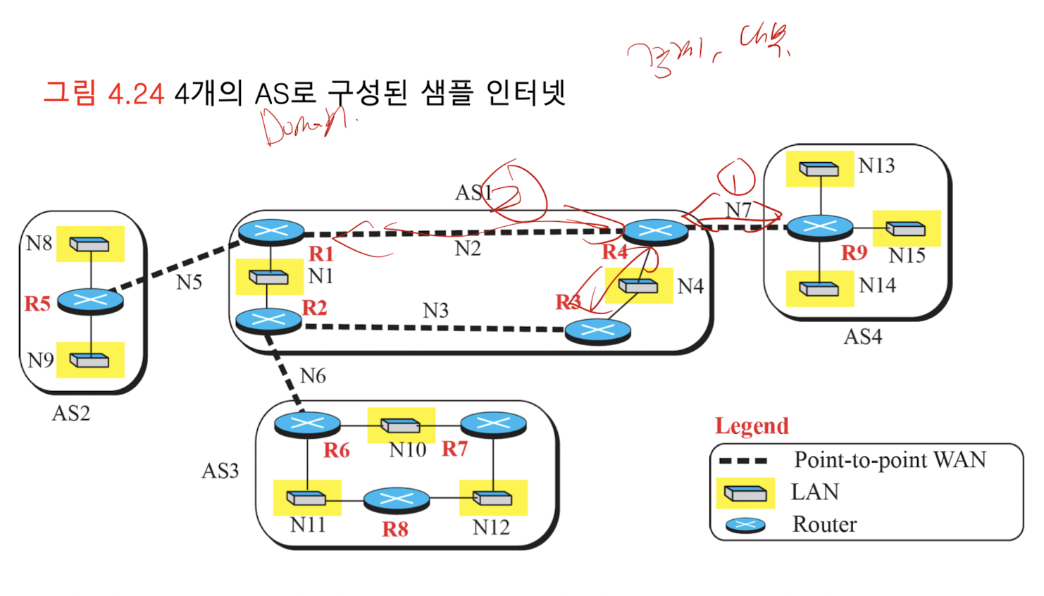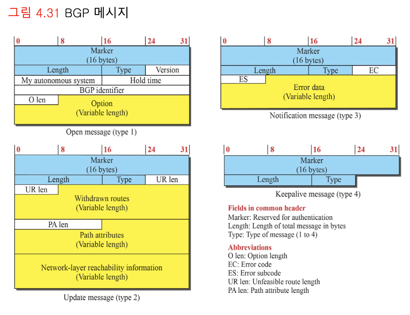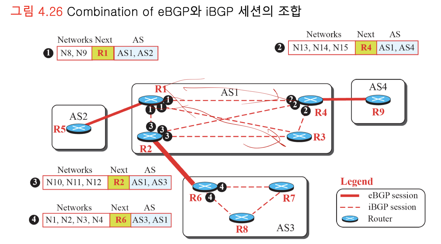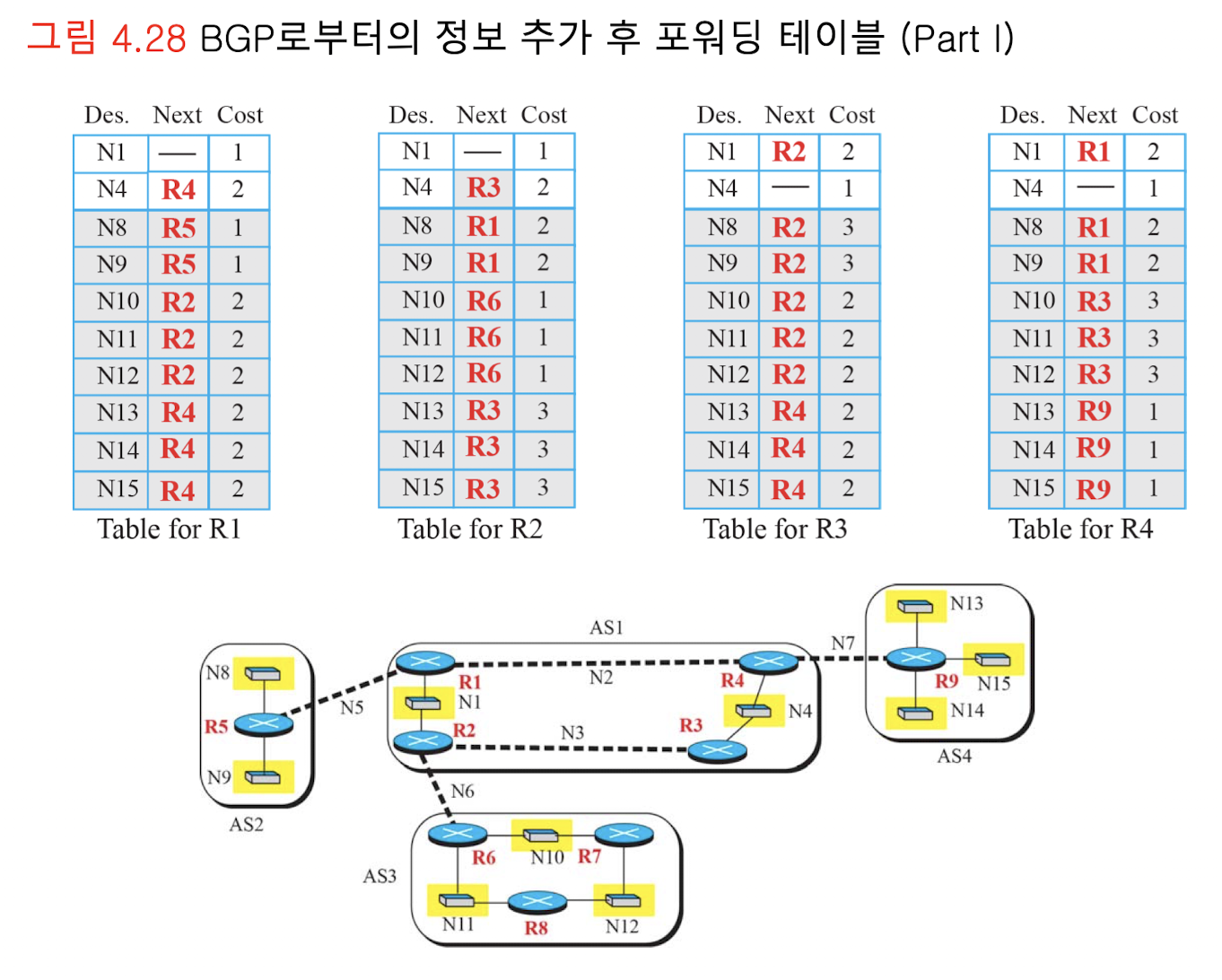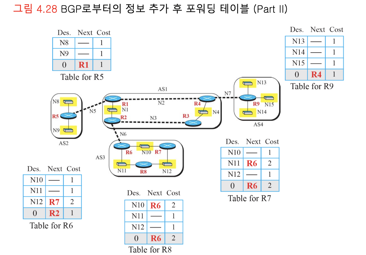 - BGP4는 인터넷에서 사용되고 있는 도메인간(interdomain) 라우팅 프로토콜