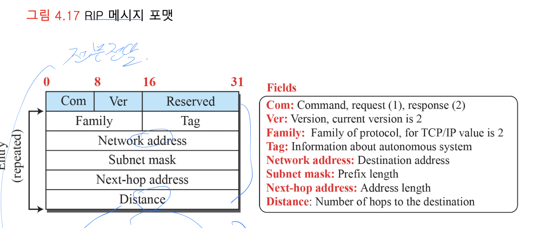 - Family, Tag, Network address, Subnet mask, Next-hop address, Distance를 전부 전달