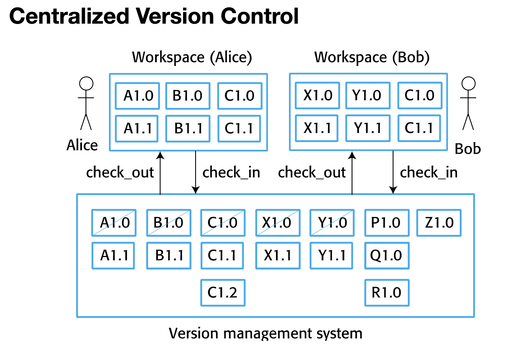 - 개발자는 시스템에 변경을 가하기 전에 버전 관리 시스템에서 개인 작업 공간으로 코드를 체크아웃합니다.