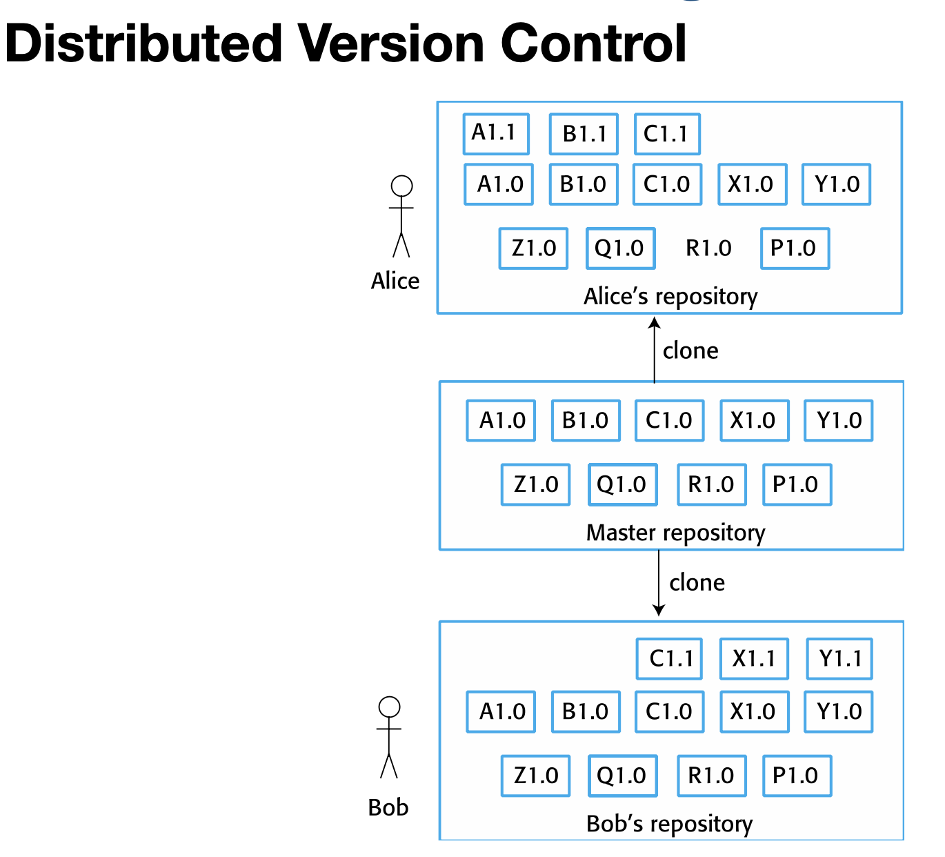 - 각 버전의 전체 복사본을 유지하는 대신, 시스템은 한 버전과 다른 버전 사이의 차이점(델타) 목록을 저장합니다.(the system stores a list of differences(deltas)