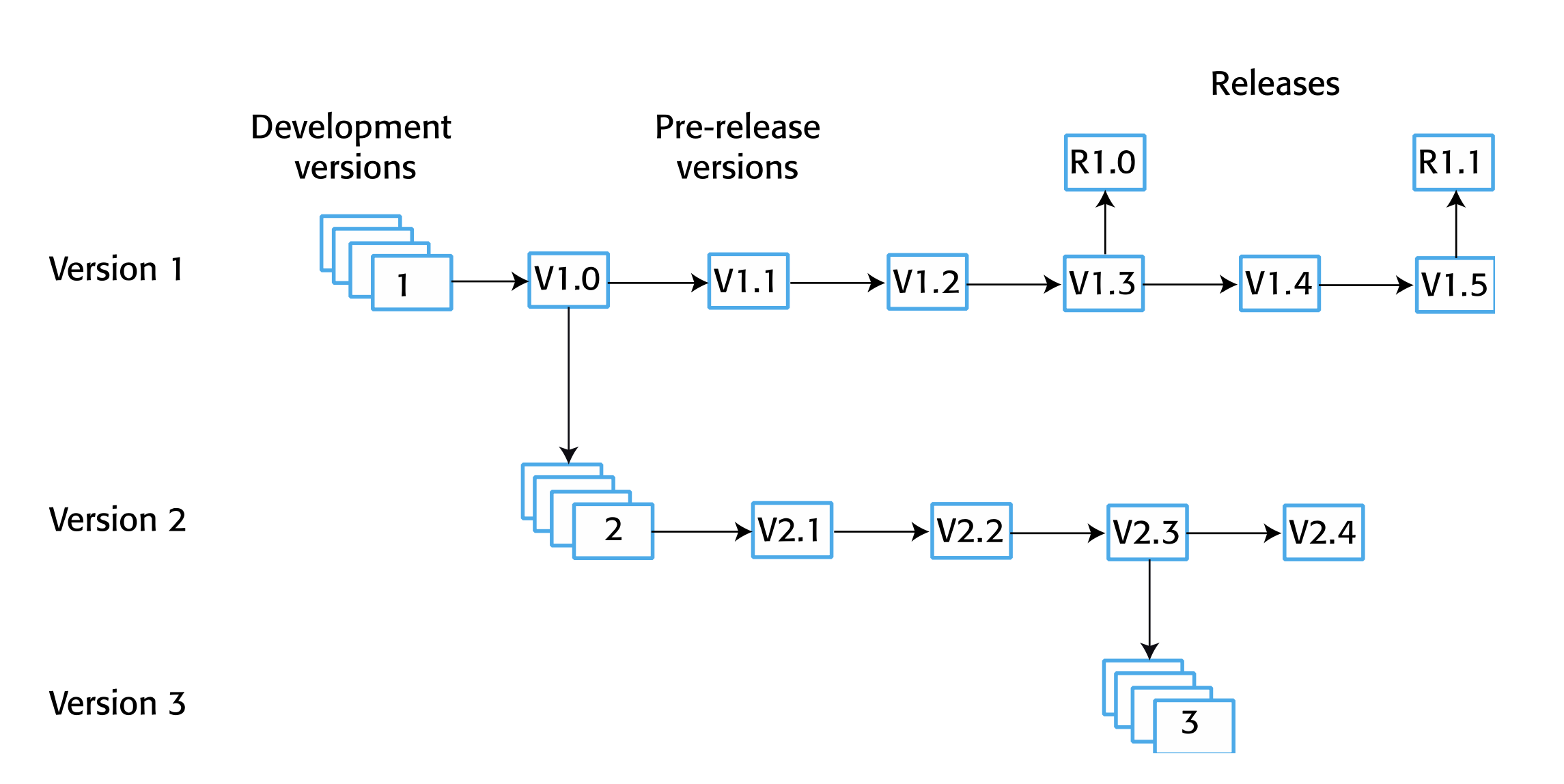- 버전이 시간에 따라 변화를 반영하는 선형적인 순서가 아니라, 여러 독립적인 시퀀스가 있을 수 있습니다.
