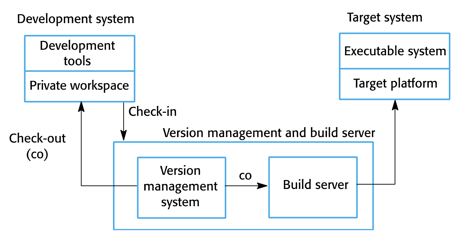 - 시스템 빌딩 도구와 버전 관리 도구는 빌드 과정에 포함되며, 빌드 과정에서 버전 관리 시스템에서 구성 요소 버전을 체크아웃해야 합니다.
